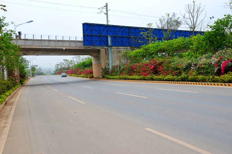 該道路設(shè)計標(biāo)準(zhǔn)為城市主干道,道路全長約4.8公里。設(shè)計道路寬度為60米,雙向8車道,橫斷面采用四塊板形式,路面采用瀝青混凝土路面,設(shè)計速度為60千米/小時。主要包括道路、橋涵、排水、照明、綠化、交通工程等建設(shè)項目。項目總投資6.5億元,其中建安費3.2億元。