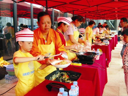 本報訊 昨日上午,南寧經(jīng)濟技術(shù)開發(fā)區(qū)在綠港·國際中心開展了以“關(guān)愛農(nóng)民工·綠港小廚神”親子活動,吸引了南寧經(jīng)開區(qū)園林綠化工人、水電維修物業(yè)工人、保潔人員等300多名進(jìn)城務(wù)工人員及其子女參加。在活動現(xiàn)場,參賽小選手們在父母的指導(dǎo)下井井有條地備菜、炒菜、起鍋,忙得不亦樂乎。