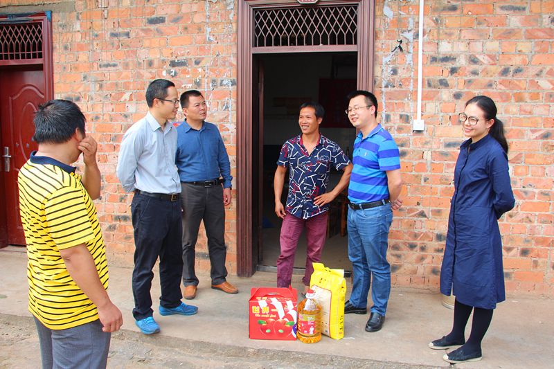 座談會結(jié)束后,在那樓鎮(zhèn)陸文威書記的陪同下,龔國強(qiáng)董事長一行先后來到貧困戶盧創(chuàng)興和梁蔭坎家里開展入戶慰問工作。在盧創(chuàng)興家里,龔董事長緊緊握住盧創(chuàng)興老人的手,詳細(xì)地了解盧創(chuàng)興家庭情況,當(dāng)了解到盧創(chuàng)興家通過轉(zhuǎn)移勞動力的方式,增加創(chuàng)收途徑,實現(xiàn)脫貧的時候,龔董事長頻頻點頭。在貧困戶梁蔭坎家里,董事長了解到他通過發(fā)展種養(yǎng),憑著農(nóng)村人樸實無華的特質(zhì),種養(yǎng)產(chǎn)品不僅獲得豐收且供不應(yīng)求的時候,董事長給他豎起了大拇指,鼓勵他繼續(xù)擴(kuò)大生產(chǎn)規(guī)模,早日實現(xiàn)小康生活。調(diào)研組一行還向兩戶貧苦戶送上了慰問品。