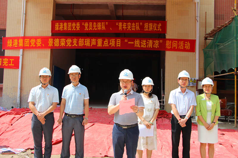 當(dāng)天,驕陽似火。綠港集團(tuán)黨委書記、董事長、總經(jīng)理龔國強(qiáng)莊重地給黨員們授予“黨員先鋒隊(duì)”紅旗,給青年突擊隊(duì)員們授予“青年突擊隊(duì)”紅旗,并提出了幾點(diǎn)要求:一是要緊緊圍繞項(xiàng)目建設(shè)開展突擊活動(dòng)。全體黨員干部和青年同志要充分發(fā)揚(yáng)不怕吃苦、勇于負(fù)重,敢打硬仗、能打硬仗的優(yōu)良傳統(tǒng),切實(shí)發(fā)揮“黨員先鋒隊(duì)”、“青年突擊隊(duì)”在“急、難、險(xiǎn)、重”任務(wù)中的生力軍作用。二是要把項(xiàng)目建設(shè)與錘煉黨員意志相結(jié)合。黨員干部和青年同志們要充分發(fā)揮模范帶頭作用,深入項(xiàng)目一線,了解項(xiàng)目建設(shè)困難,想方設(shè)法協(xié)調(diào)解決。要在項(xiàng)目建設(shè)中增強(qiáng)本領(lǐng)、錘煉意志、增強(qiáng)黨性,更好的服務(wù)入?yún)^(qū)企業(yè)建設(shè)發(fā)展。三是要充分發(fā)揮“黨建帶團(tuán)建”作用?!包h員先鋒隊(duì)”要引導(dǎo)和指導(dǎo)好“青年突擊隊(duì)”開展好項(xiàng)目建設(shè),黨員干部與青年同志們要相互關(guān)心,密切配合,充分發(fā)揮整體功能和團(tuán)隊(duì)精神,確保瑞聲廠房項(xiàng)目能在6月25日完工交付9號廠房、7月25日完工交付3、13號廠房的任務(wù)目標(biāo)。