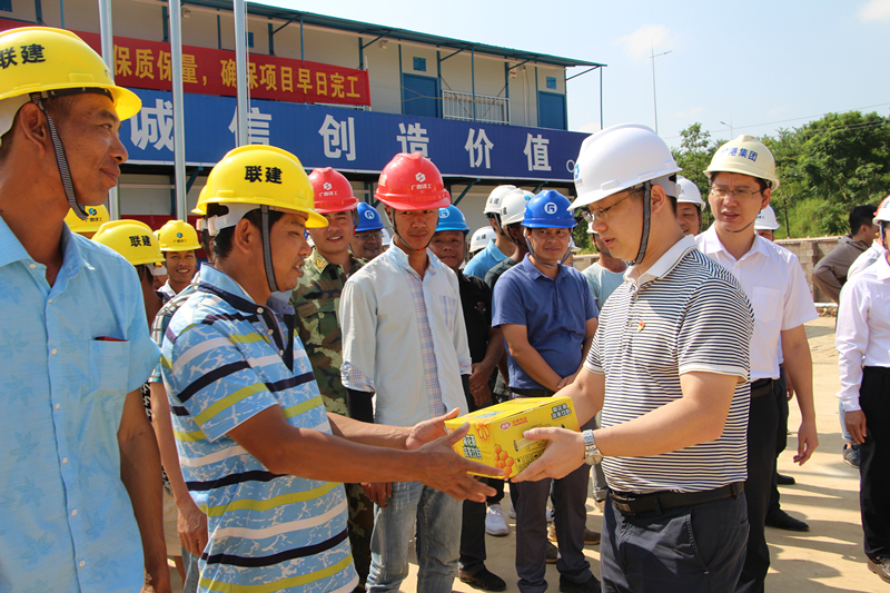 綠港集團(tuán)黨委書(shū)記、董事長(zhǎng)、總經(jīng)理龔國(guó)強(qiáng)給項(xiàng)目一線(xiàn)人員送清涼