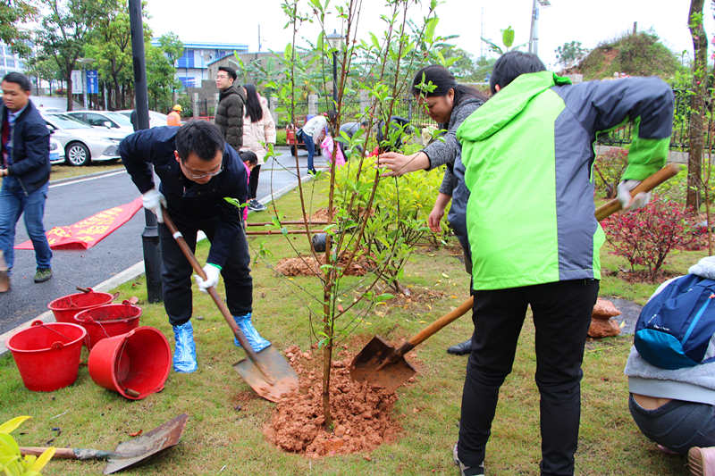 綠港集團(tuán)董事長龔國強(qiáng)帶領(lǐng)職工們開展植樹護(hù)綠行動