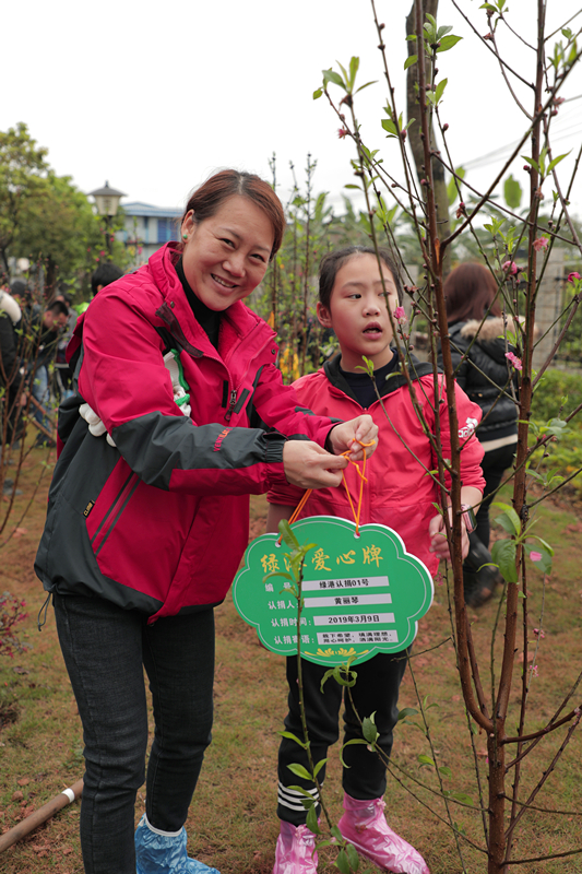 當(dāng)天,綠港集團(tuán)還舉行了植樹護(hù)綠活動。在細(xì)雨紛飛中,家長和孩子們一起動手,分工協(xié)作。大家栽得認(rèn)真,干得賣力,揮鍬鏟土、挖坑、栽樹、蓋土、澆水,各個環(huán)節(jié)銜接有序,配合默契。整個植樹活動現(xiàn)場熱火朝天,歡聲笑語不絕于耳。經(jīng)過一個多小時的揮汗奮戰(zhàn),上百棵小樹苗整齊的“站”在了綠港·國際中心桃樹林中。放眼望去,樹苗迎風(fēng)挺立、搖曳生姿,大家看著這一片自己親手種下的樹苗,無不露出幸福的笑容,紛紛與小樹苗合影。綠港集團(tuán)下屬榮鑫公司副總經(jīng)理唐欽月表示:“植樹造林是一項(xiàng)利于當(dāng)代、造福子孫的偉大工程。綠港集團(tuán)成立五年來,每年都積極組織員工開展義務(wù)植樹造林活動。今天我們帶上孩子一起參加義務(wù)植樹活動,不僅增強(qiáng)了職工們生態(tài)環(huán)境保護(hù)的責(zé)任感,也給孩子們樹立了關(guān)心、愛護(hù)以及主動參與家園建設(shè)的意識和榜樣?!?nbsp;