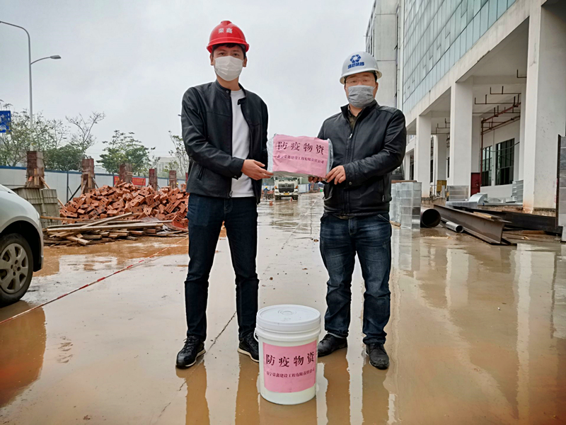 榮鑫公司副總經(jīng)理黎杰代表公司為項(xiàng)目現(xiàn)場(chǎng)送上防疫物資