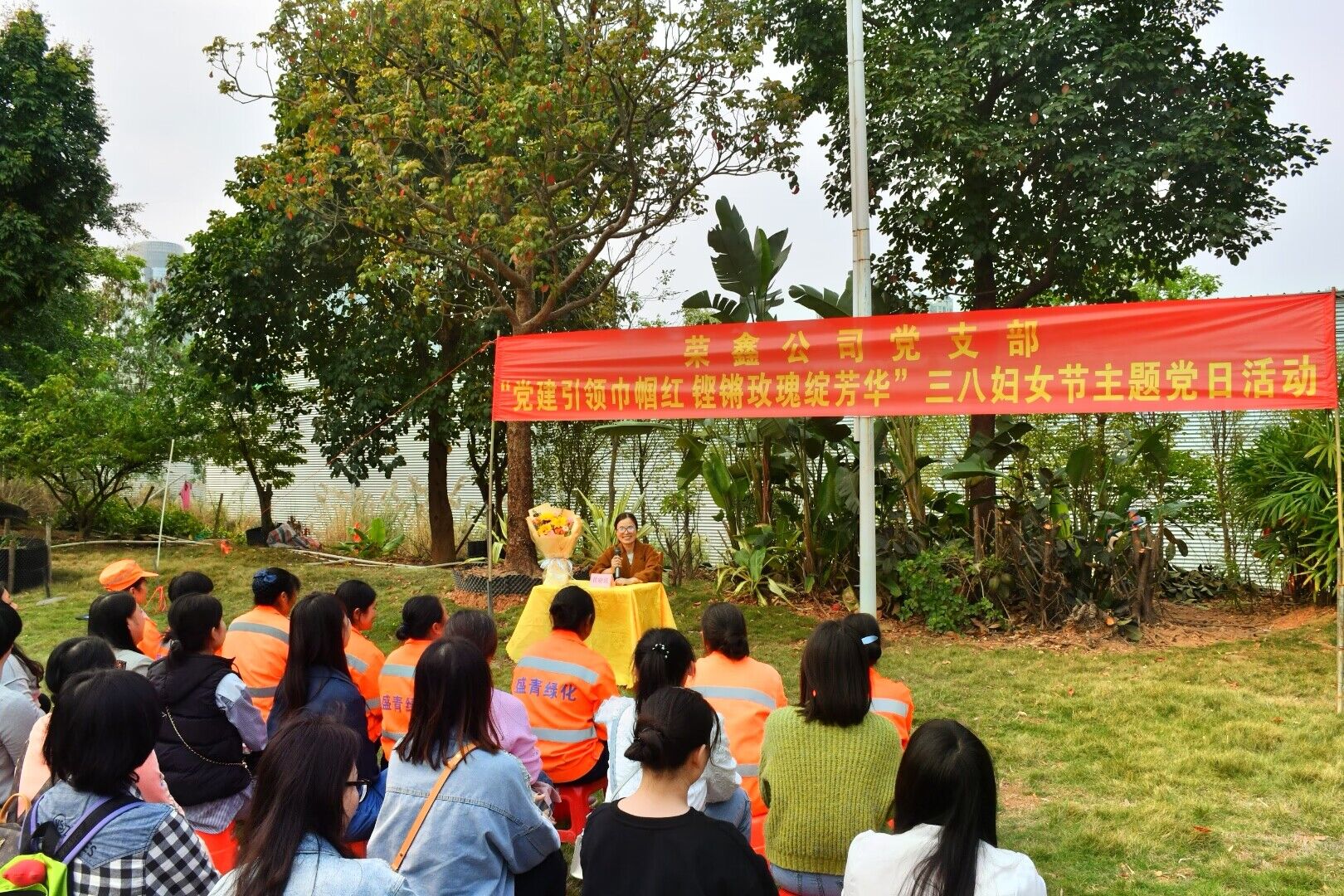 為深入學習貫徹黨的二十大精神,凝聚巾幗力量,展現(xiàn)新時代巾幗風采。榮鑫公司黨支部堅持黨建統(tǒng)領,積極探索“黨建+”工作模式,將黨建與婦女工作有效融合,推動公司事業(yè)向縱深發(fā)展。3月6日,榮鑫公司黨支部組織全體黨員干部、女職工開展“黨建引領巾幗紅 鏗鏘玫瑰綻芳華”三八婦女節(jié)主題黨日活動,集團黨委委員、副總經(jīng)理陸羿冰,榮鑫公司黨支部全體黨員、女職工約50余人參加。